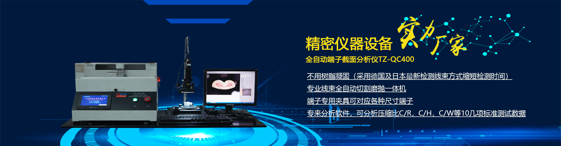 端子金相檢測顯微鏡能觀察物體時能產生正立的三維空間像,立體感強,成像清晰和寬闊,具有較長的工作距離;配置高精度線束端子圖片測量分析系統,組合成線束端子檢測顯微鏡,高質量光學系統與高分辨率攝像頭的完美組合,讓斷 面圖像更清晰,更精確。