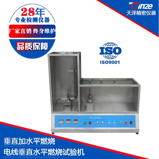 垂直水平燃燒試驗機適用于各種電線電纜絕緣被覆材料、印刷電路板材料,IC絕緣體等有機材料之耐燃燒性試驗.試驗時,將試件至于火焰頂端,燃燒15秒,熄滅15秒,重復5次后檢查試件被焚情形,可設定燃燒,熄滅時間及重復次數(shù),并可自動操作。適用于UL1581.UL13.UL444.UL1655之VW-1以及CSA之FT-1。